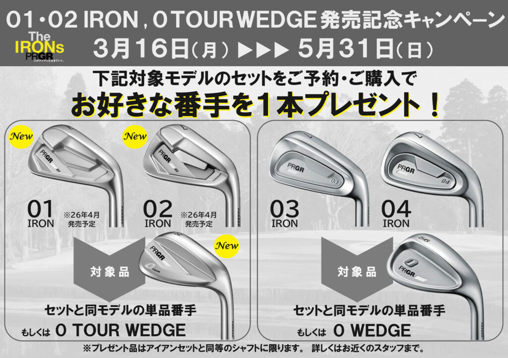 PRGR IRONsシリーズから4月に新たに、01/02 IRON、0 TOUR WEDGEが登場します。