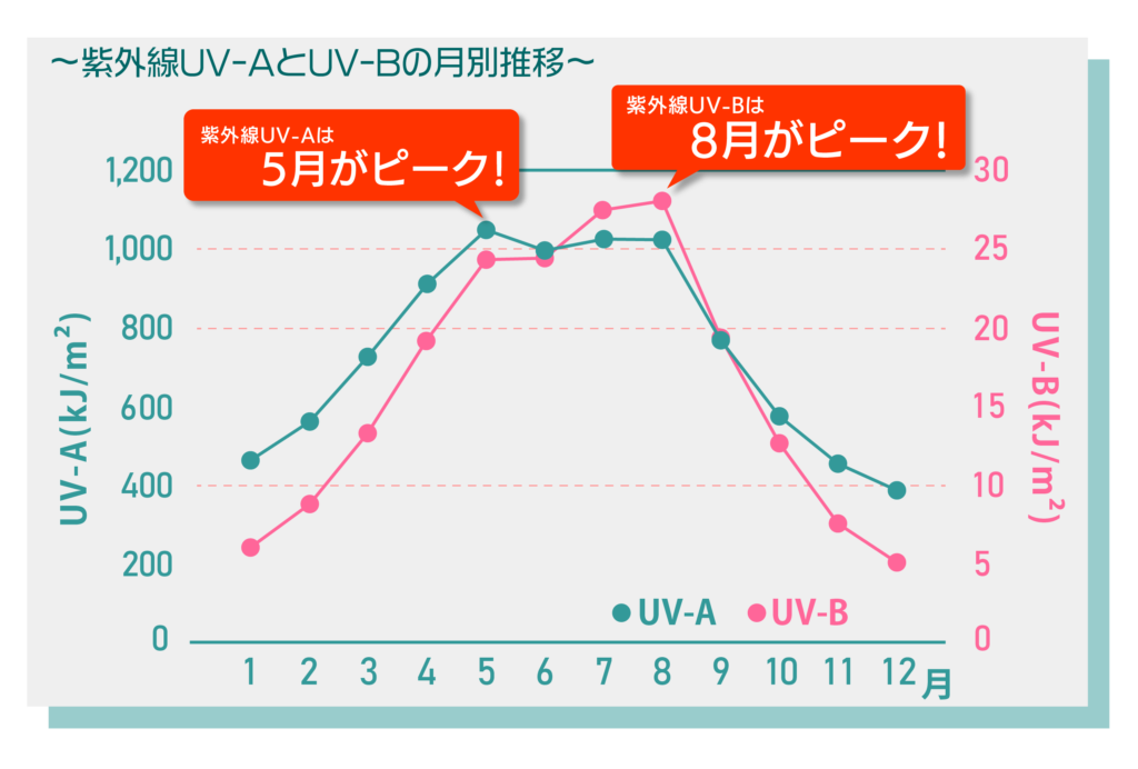 2つの紫外線は降り注ぐピークが異なる